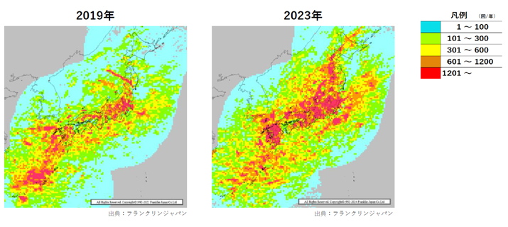 地球温暖化の影響によるゲリラ雷雨の増加に伴い、雷被害も増加しています。