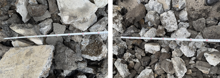 ▲コンガラの破砕前後(左:破砕前、右:破砕後)