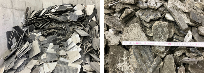 ▲サイディングボードの破砕前後(左:破砕前、右:破砕後)