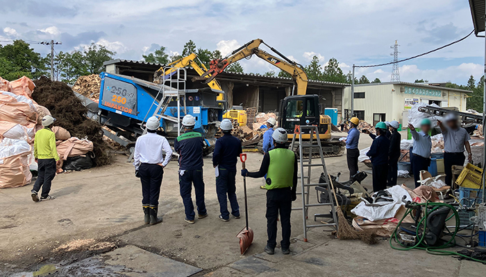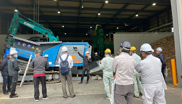 木くず、コンクリートの両方に対応できるマルチな破砕能力を体験頂きました。競合他社の製品と比較した際の破砕効率の違いや、メンテナンス、オペレーション面など、活発な意見交換がなされました。