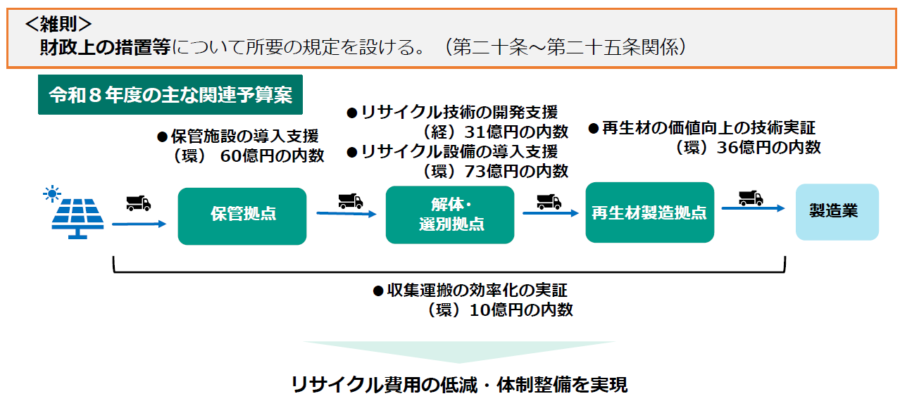 国は、リサイクル事業の効率化と体制整備を促進するため、総額百数十億円規模の財政上の措置を講ずることとしています。