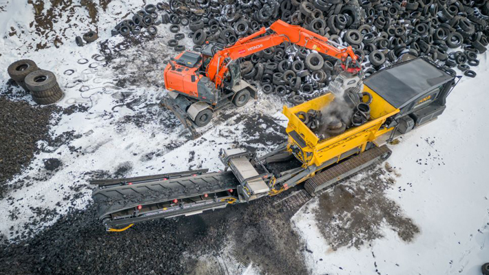 フィンランド国内のリサイクルタイヤの100%を収集・処理する同社は、従来、破砕作業を外部の業者に委託していました。 しかし、新たな運用モデルへの移行に伴い、自社で破砕機を保有し、オペレーションを内製化する必要が出てきました。 目的は、輸送効率の向上(破砕チップは丸タイヤより高密度で運べる)と、自社管理による品質の担保、そしてコスト削減でした。