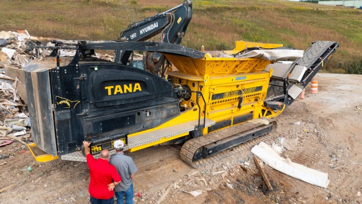 TANA Sharkはマットレスだけでなく、タイヤや木くず、廃プラなど「ほとんど何でも食べる」と高く評価され、その高い処理能力と汎用性で現場で破砕処理ができるようになったことで、従来かかっていたトラックでの輸送コストを約70%削減。