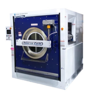 国内最小規模のリネン工場を実現する中核機器です。世界初の特許技術(第6747676号)を搭載した「リネンが絡まない洗濯機」を、実際に間近でご覧いただけます。